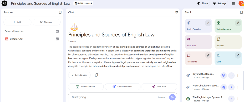 Law is dense, and each chapter introduces new terms, examples, and arguments. If you throw it all into one notebook, even the AI gets confused.